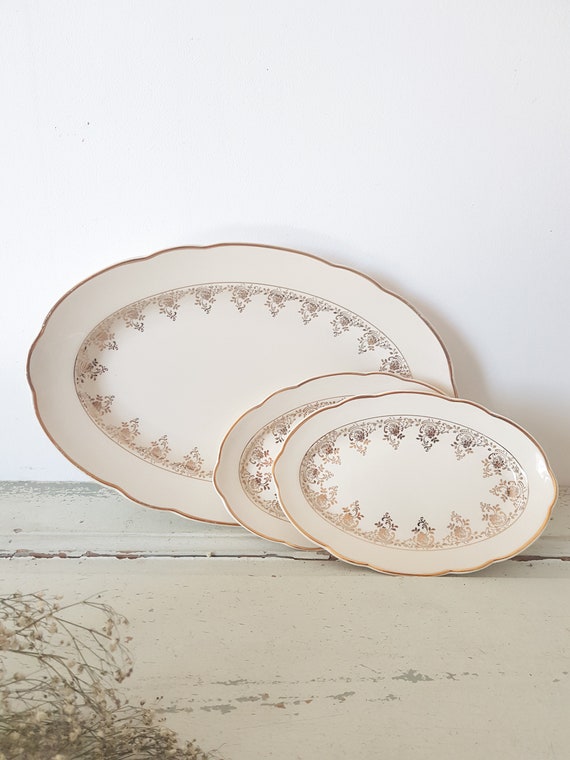 Set Of 3 Oval Serving Platters From Villeroy And Boch Gold Etsy Uk